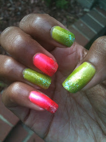 Damn damn damn! I don't have words for this brand. I literally got knocked speechless. Karen and Lexi of LL have so many great polishes it will make your head spin! Endless combinations of glitter and shimmer enough to spark any lacquerista's imagination. Certainly, they grabbed my attention with some of their wonderful creations. I picked up two great polishes Salt N Peppa and Party Rockin'.